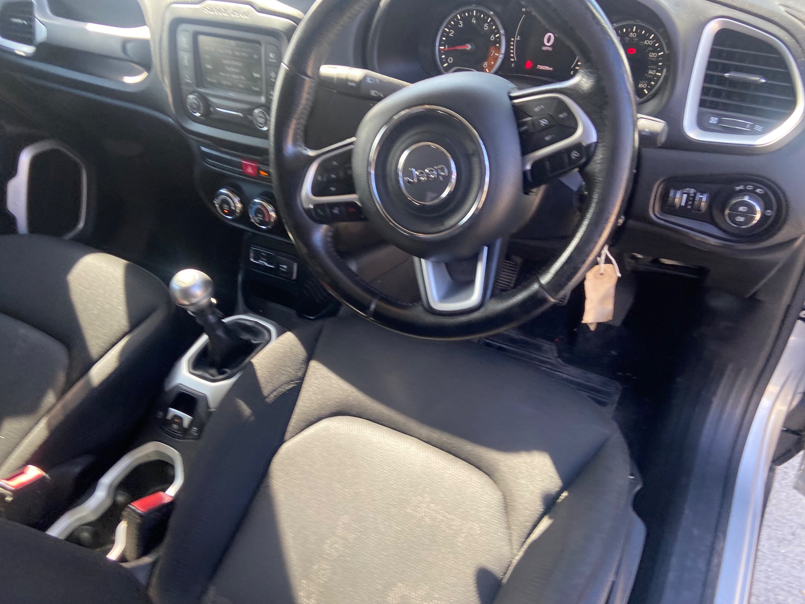 This 2015 Jeep Renegade 1.4T MultiAirII Longitude SUV with a mileage of 75100 miles is a reliable and stylish vehicle that is perfect for families or individuals who love adventure. Powered by a petrol engine and equipped with a manual transmission, this SUV is not only powerful but also efficient. With 5 seats and 5 doors, there's plenty of room for passengers and cargo. Plus, it's ULEZ compliant, making it an environmentally friendly choice for city driving. The MOT is valid until 21/06/2026, giving you peace of mind. The car comes in a sleek Glacier color and features black cloth seats with Jeep logo and satin silver bezel accents. Additional features include a 12V power socket, 17in alloy wheels, and ABS - anti-lock brakes, guaranteeing a comfortable and safe ride. Don't miss out on this opportunity to own a top-quality SUV that's ready for all your driving needs.